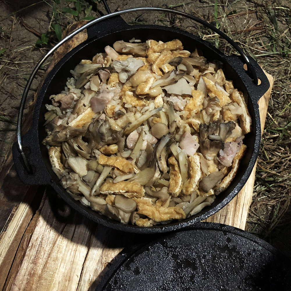 今回はダッチオーブンで炊き込みご飯を作ってみた。九州料理のかしわ飯と言うらしい。分量とか時間とか大雑把だったから不安だったけど、ちゃんと美味しく食べられてよかった。ささがきごぼうって何だろうって思って普通のゴボウにしたけど、ささがきって切り方の方法だったんだな……。
