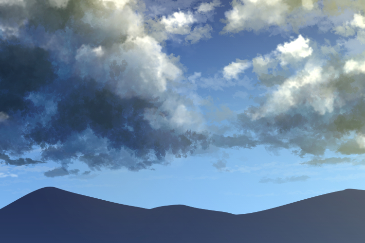 仕事で空を描いてた時に良い雲ブラシを見つけたので落書き。ストレスなく描けるってのは大事な要素だよね。