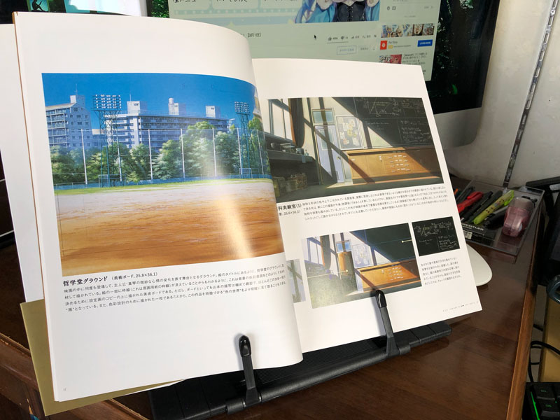 適当にAmazonで物色して見つけたやつ。シンプルで良いデザイン。大型本も一応支えられるけど、アームが緩くなりそうな心配はあるのであまりやらない方がいいかも。昔はよく職場でこんな感じで参考にしながら背景を描いていた…。